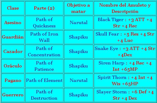 Esta serie de quest específicas para cada clase continua a partir de la Quest Épica de lvl 25. Empezando en el Puerto Norte Meteora ( Meteora North Port) o el Campamento Warune (Warune's Camp), se te pedirá que viajes a las dos Torres (Fuego y Sangre). Dependiendo de tu clase se te pedirá que mates uno de los dos mobs (Narutal o Shapiku) y llevar de regreso su corazón. Ambos se encuentran cerca de Ruber Chaos en uno de los costados del cañón.